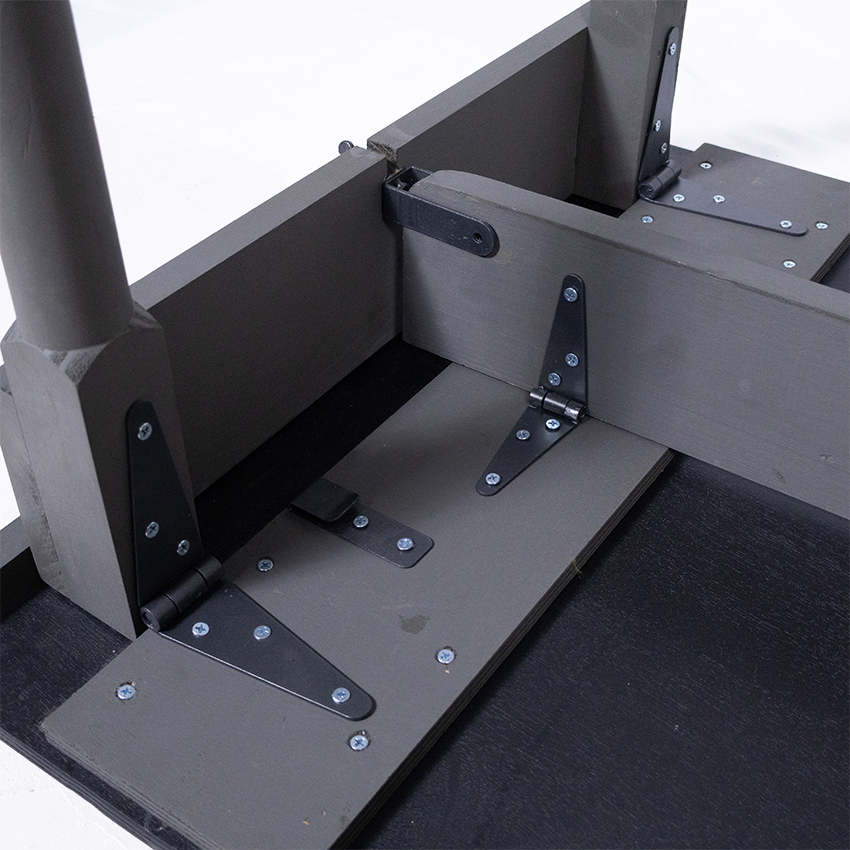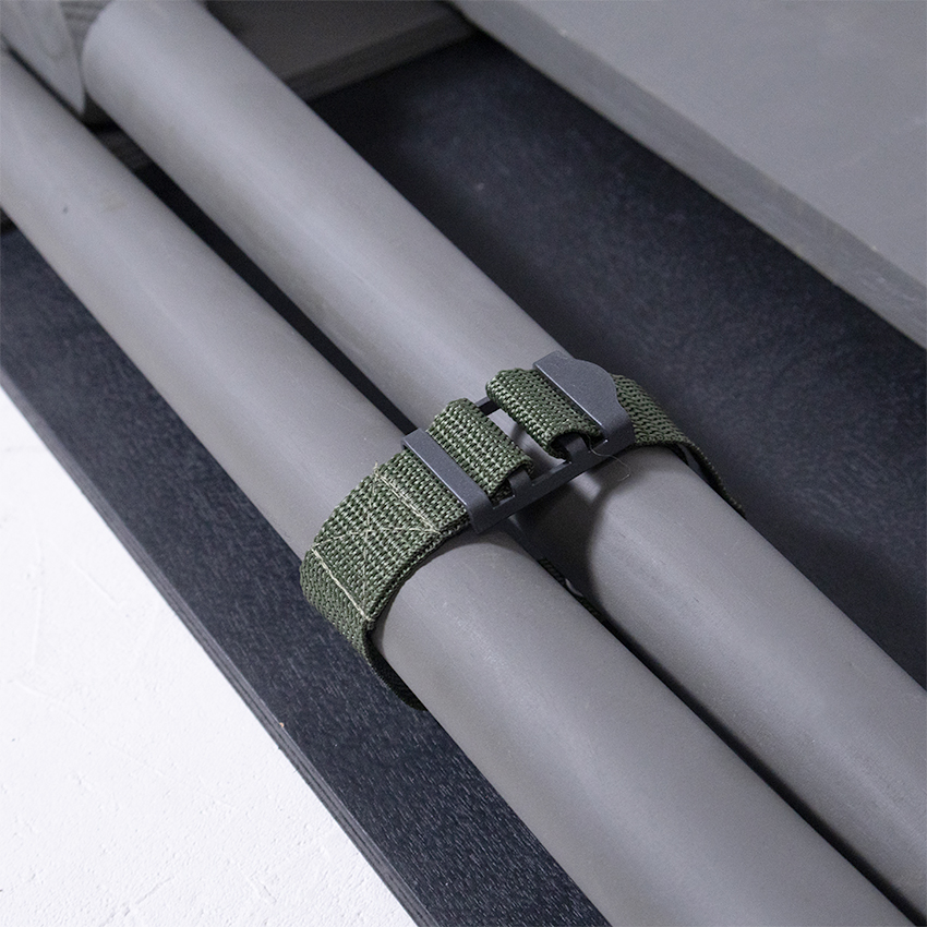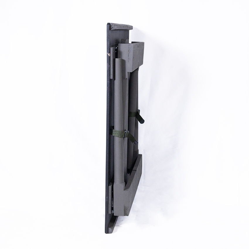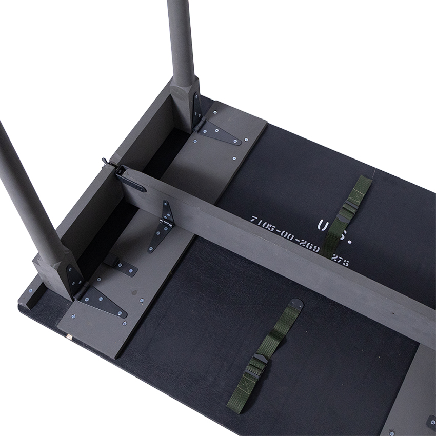 1942年以前のタイプは天板に無塗装仕上げの天然木が使用され、脚部の収納用のストラップは革製の物でした。その後1943年に、天板部は合板製になり、全体をオリーブグリーンに塗装し、ウイングナットを使用する等、関節部の金具が強化されました。また、脚部の収納用のストラップがキャンバス製になるなど、資材の簡素化と構造の強化が図られ、こちらが以後の基本形となりました。