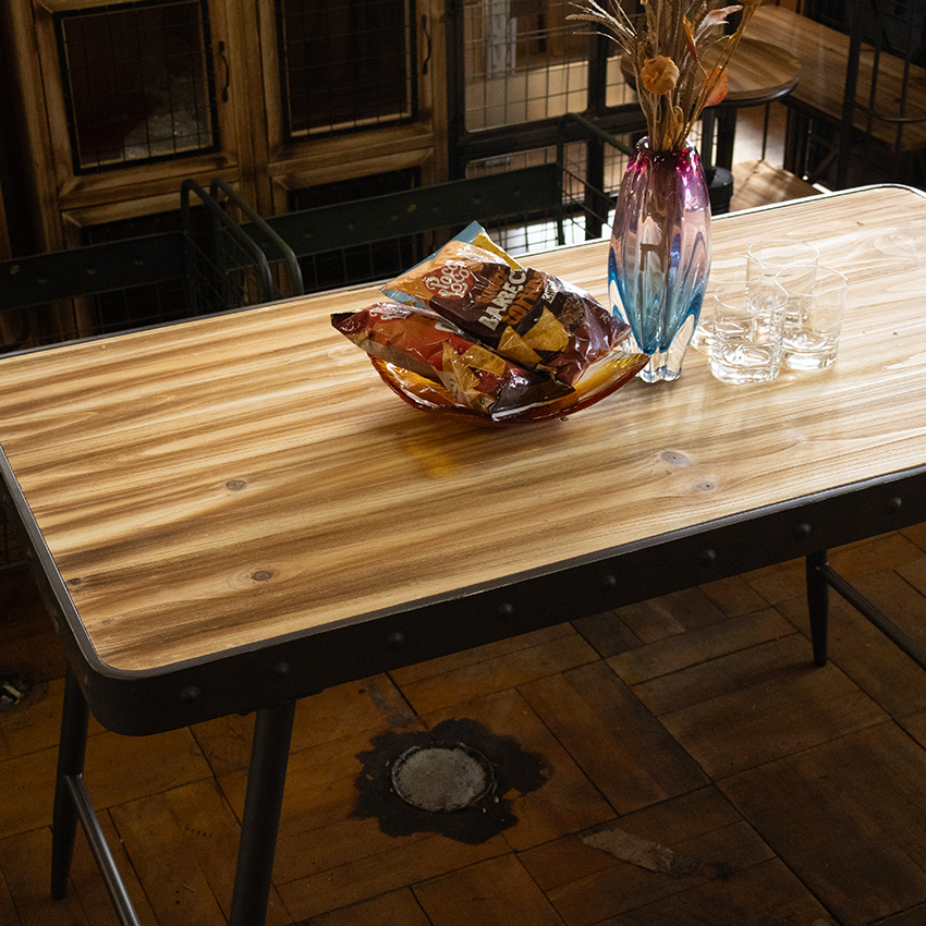 7081 ウッド/アイアン テーブル グレー