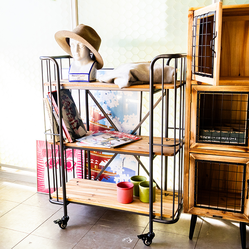 7149 ウッド/アイアン 3段シェルフ ワイド